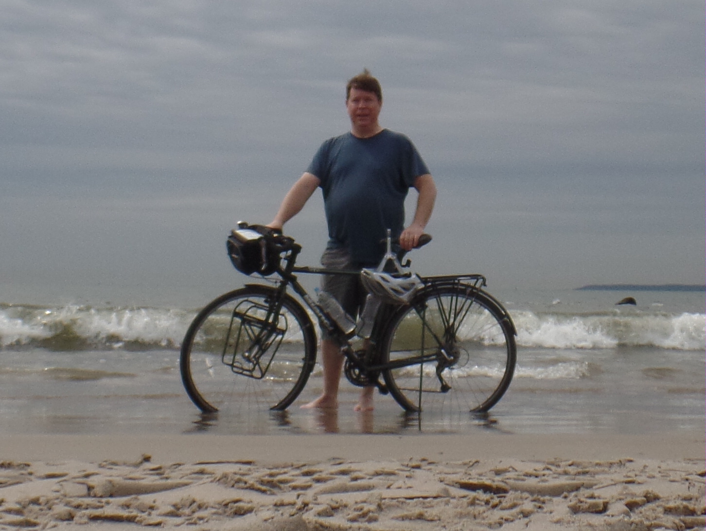 I dipped my wheels in the Atlantic Ocean this morning. This is a sort of tradition for people riding across the US, though I certainly don’t know if everyone does it. The idea is to dip your wheels in one ocean, ride across the continent, then dip your wheels in the other ocean. I did this at Coney Island. Technically, that is not the Atlantic, but rather the Lower New York Bay. Close enough. With my wheels dipped, my ride across America has begun. I probably looked a little odd, with my bicycle in the water, taking pictures.