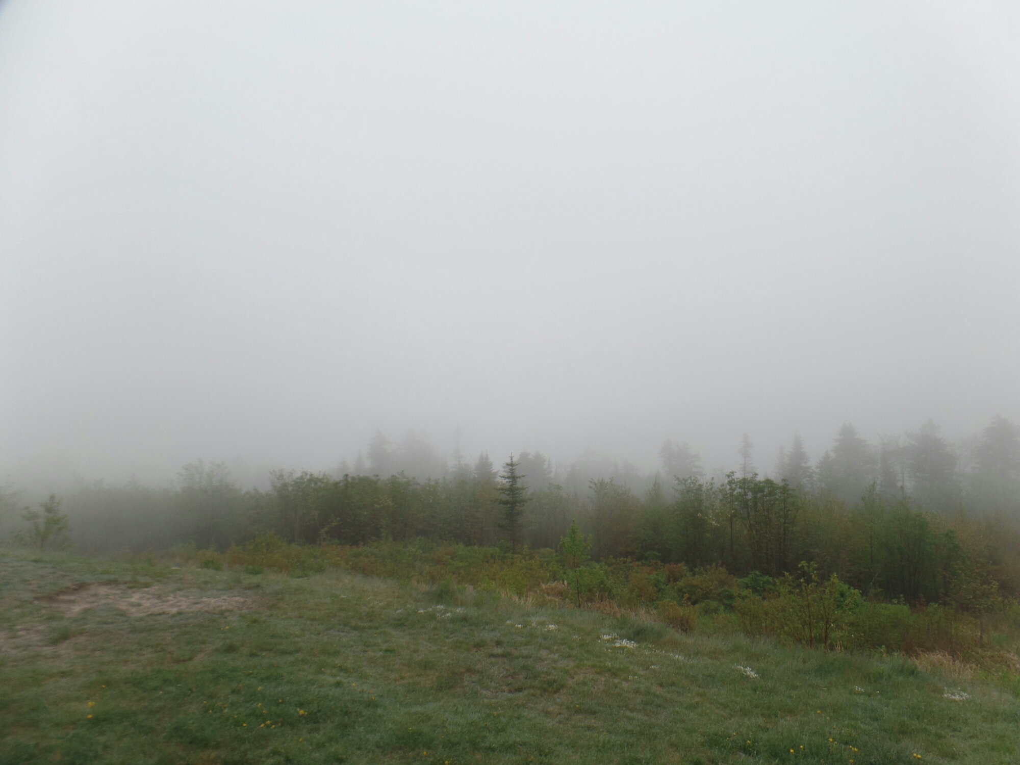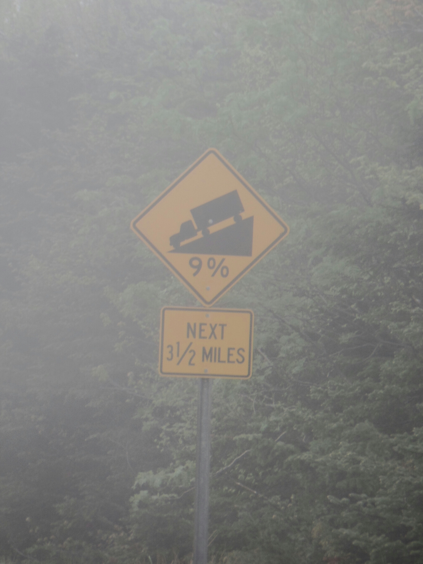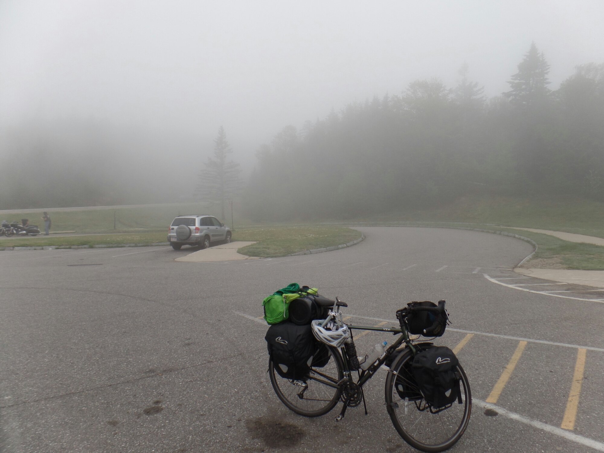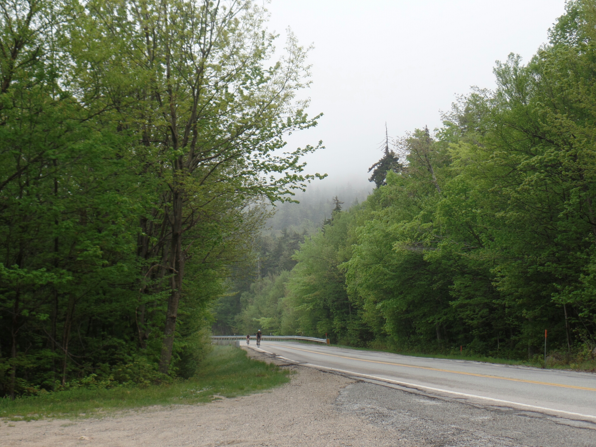There were low clouds over the top of the mountains. I didn’t think anything of it when I started out this morning. By the time I got to the top of Kancamagus Pass, I was in the clouds. The fog was pretty thick and visibility low. I was a little concerned about being seen. Once over the pass, it didn’t take long to get out of the clouds.