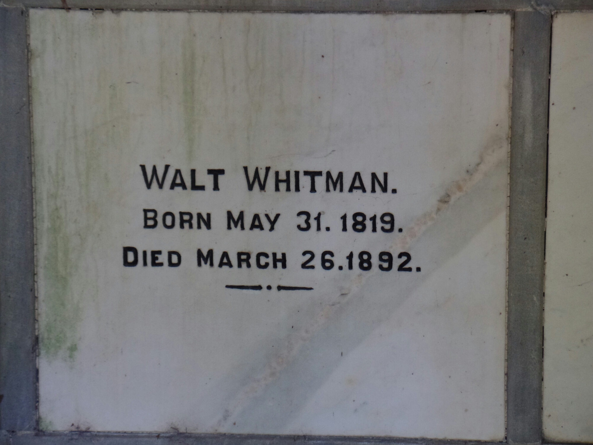 After yesterday’s disappointment, I had to try again. This time, I took mass transit across the river to Camden. I was able to find Whitman’s grave. There were no signs in the cemetery pointing to it, so I walked passed it at first. It is kind of off to the side from the entrance behind some trees. It was a family mausoleum, with what looked like his parents and at least some of his siblings. Walt got top billing, though. Most mausoleums only had the family name above the door. Whitman’s had “Walt Whitman”. One thing that surprised me a bit, at the graves of other authors I have visited (Emerson, Thoreau and Alcott), some people had put stones on the gravestones. Some had put pens on the gravestone or graves. At Whitman’s grave, there were only a couple of stones and no pens. I gathered a fistful of grass to put at the gate. It seemed a fitting tribute.