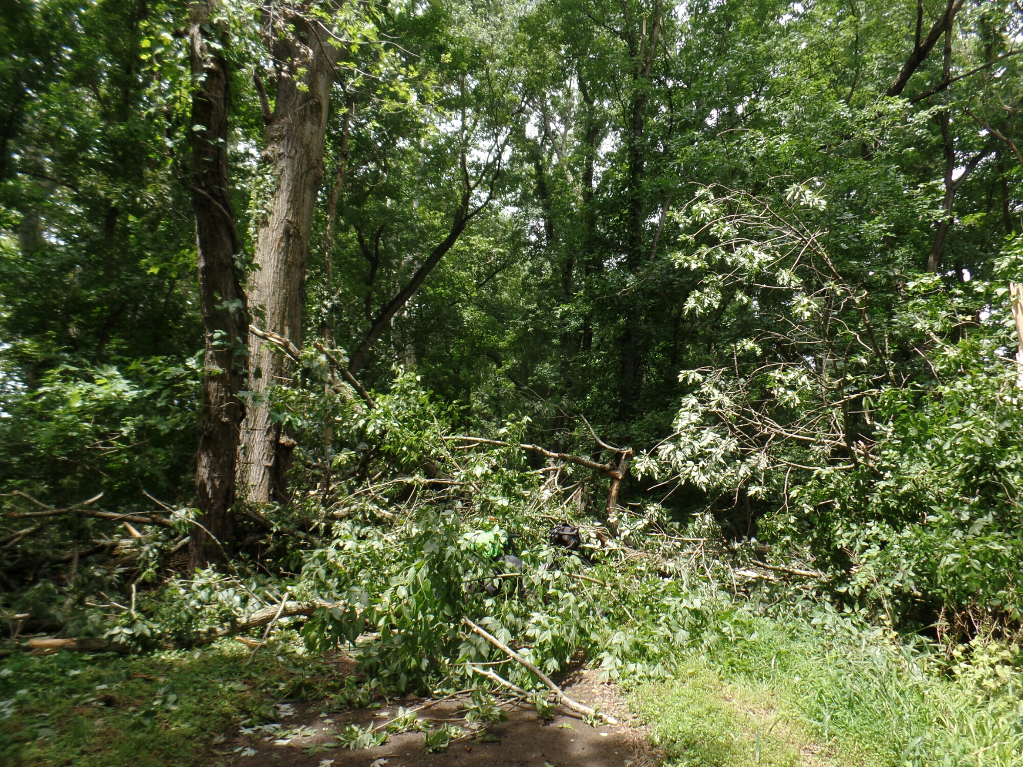 The storms yesterday must have been stronger than I thought. On the way to Harpers Ferry, there was a tree that had been blown down across the whole path. The only way across was to carry everything over the tree or try to go into the woods and go around the tree. It looked like it went pretty far into the woods, so I had to unload my bike and carry everything across bit by bit.