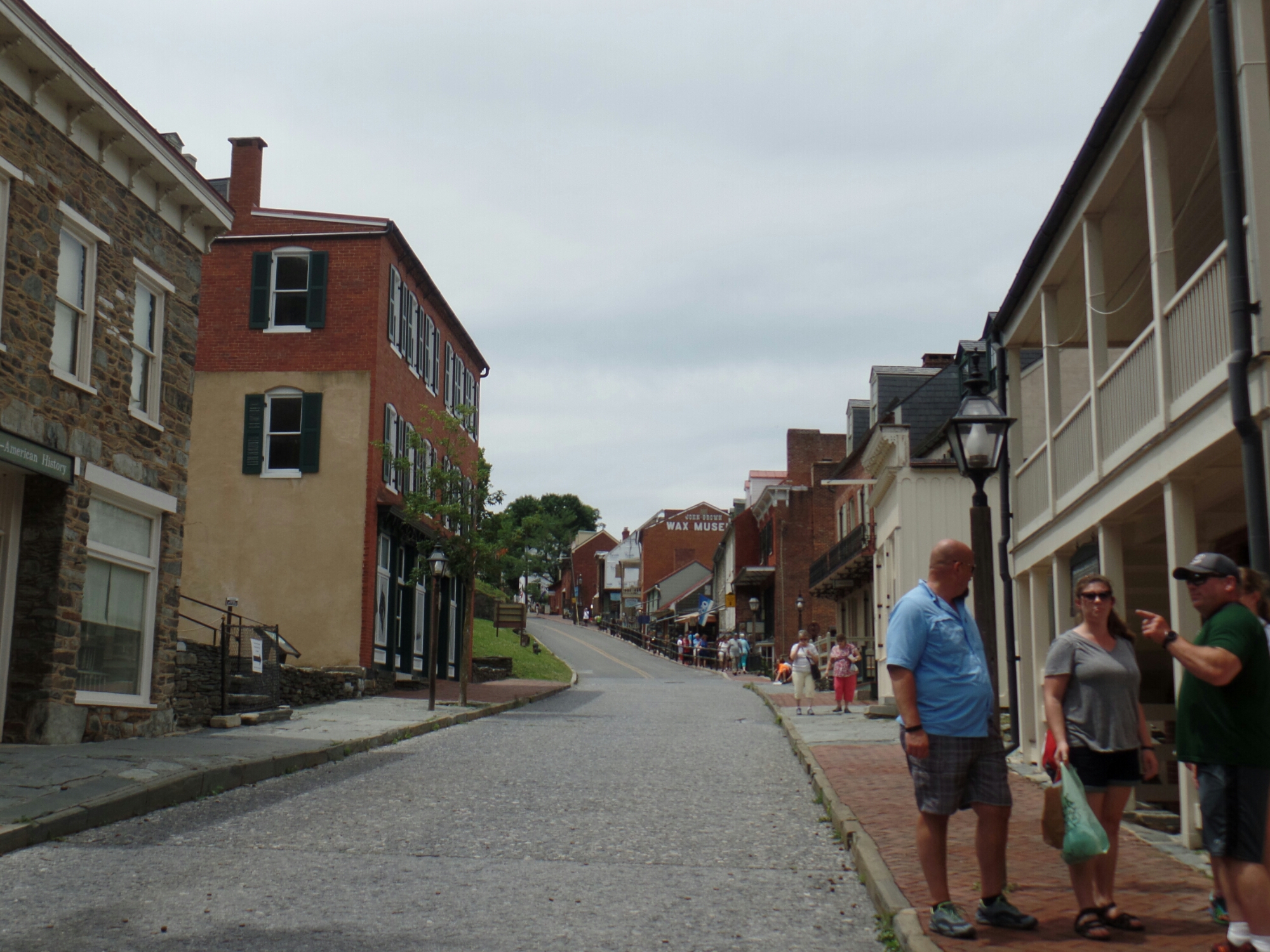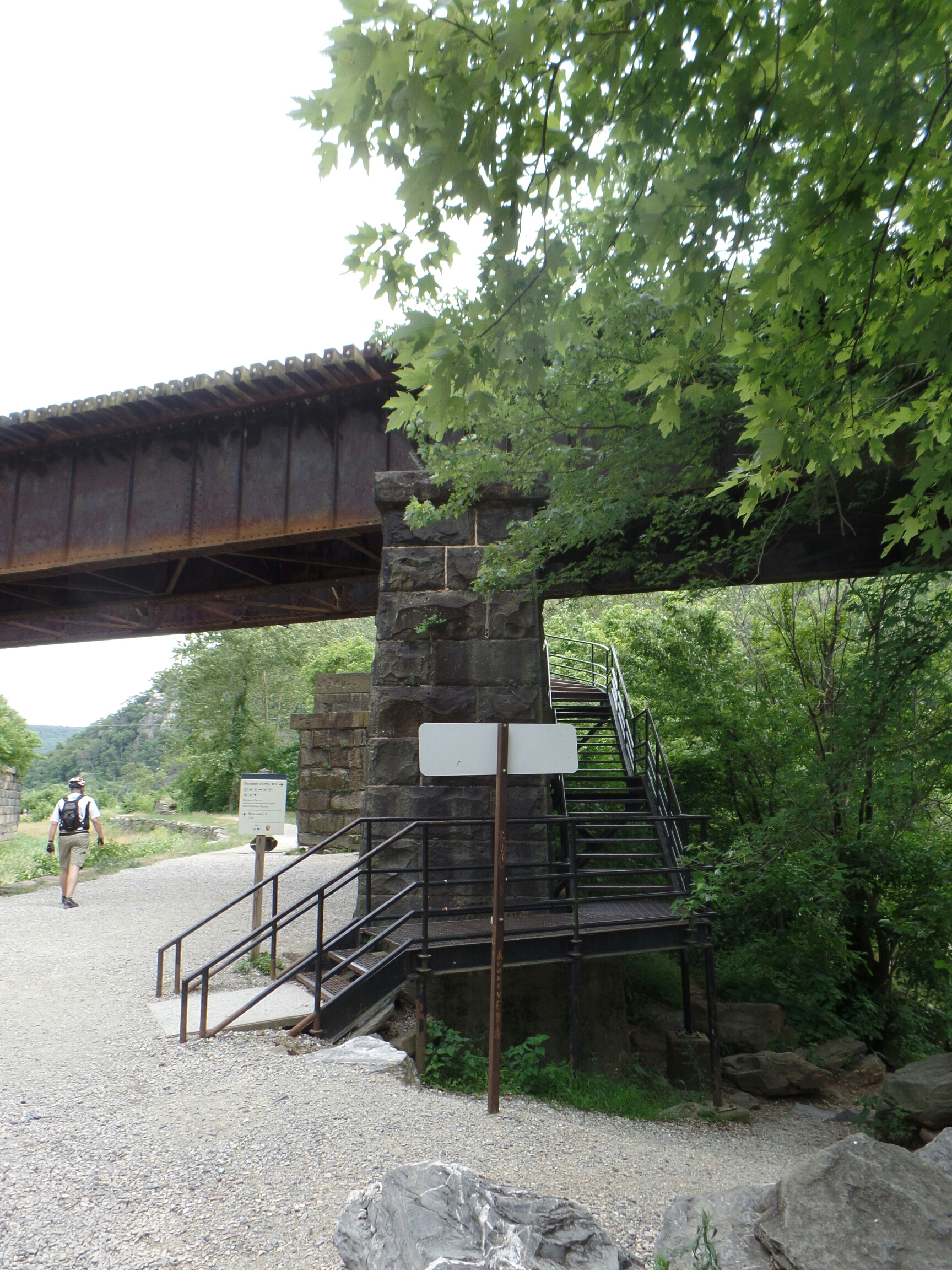 At Harpers Ferry, there is a foot bridge that crosses the river into the town. On the canal side, there are steps leading up to it. I wanted to go into town, but didn’t really want to haul my bike up the steps and didn’t want to leave everything on the canal side. I looked for another way across, a ferry maybe, but that was the only way. Then I saw two young women bringing their bikes down the stairs. They weren’t as loaded as I was, but it gave me hope that I could make it. I started the long process of hauling my bike up the steps. It wasn’t so bad, just slow. About half way, I realized I would have more trouble coming down because controlling the bike would be harder. I ended up unloading everything again and making a few trips up and down the stairs to get back onto the path. On the bright side, after all this riding, stairs are pretty easy to climb.