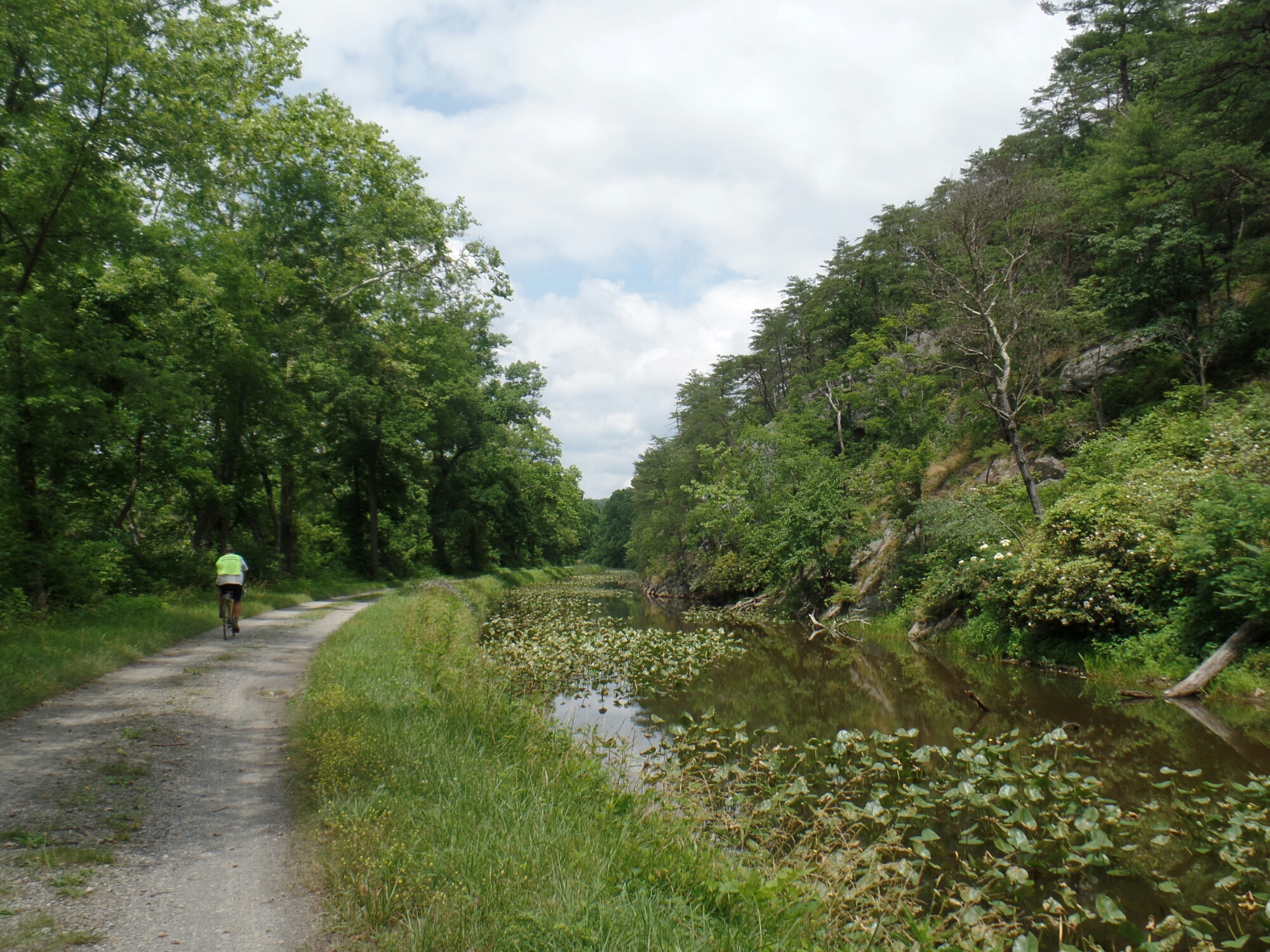 I actually got an early start this morning, leaving the campground a little after 8:00. I only rode a little bit to the next town called Little Orleans where they were supposed to have a store of some sort. Turns out, it is part cafe and part convenience store. Unfortunately, the cafe did not serve breakfast and the store did not have much selection. I ended up getting a packages sweet roll for breakfast. While I was eating, an eastbound cyclist pulled up. We chatted for a bit and he guaranteed that the GAP was a much nicer riding surface, drains better and is not covered in mud. I guess I will found out. Because it has not rained since yesterday morning, the canal trail started to dry out in places. Other places still have plenty of mud, though.