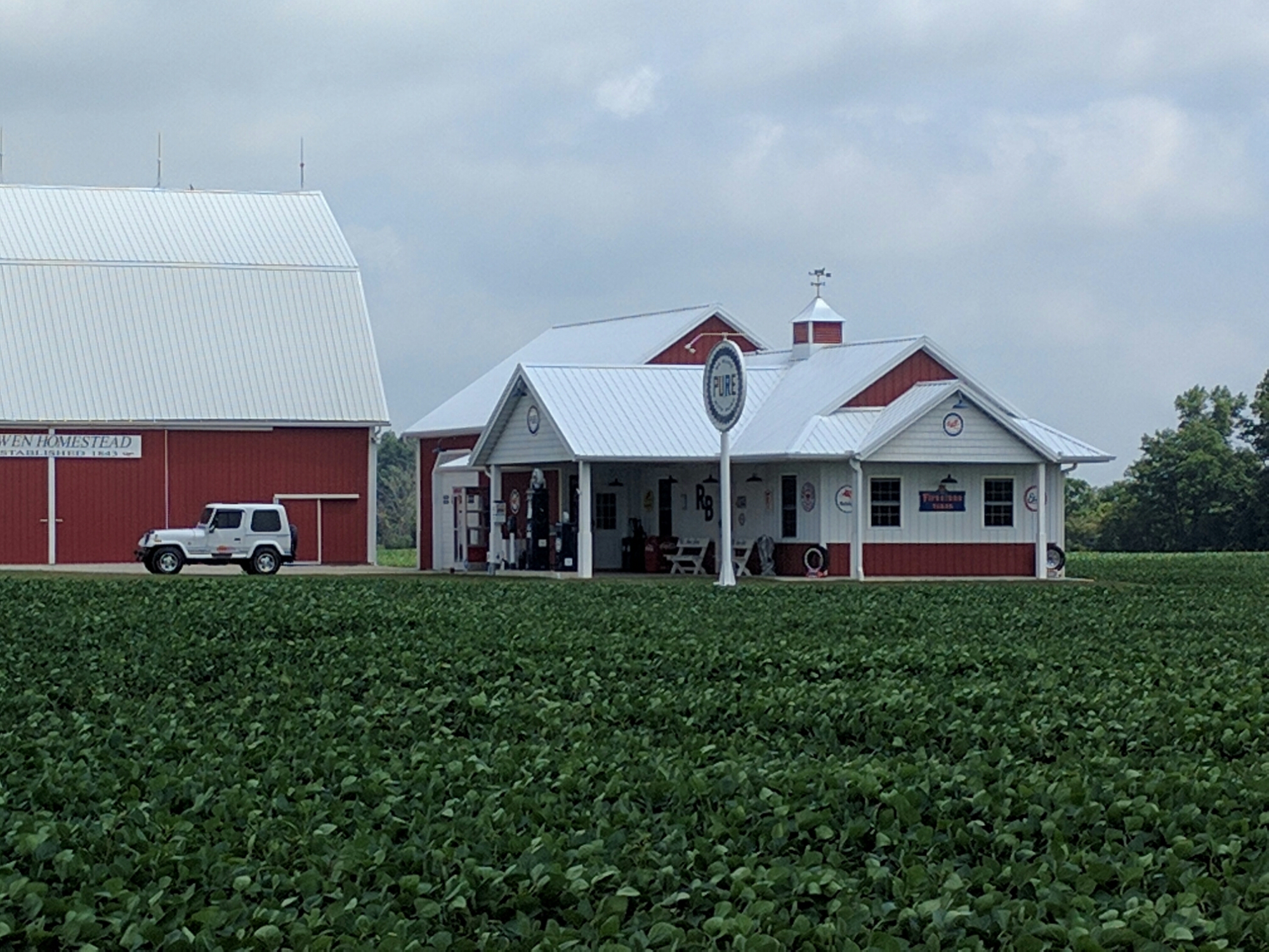 This is one of the outbuildings on the farm with the no trespassing signs, made up to look like an old gas station.