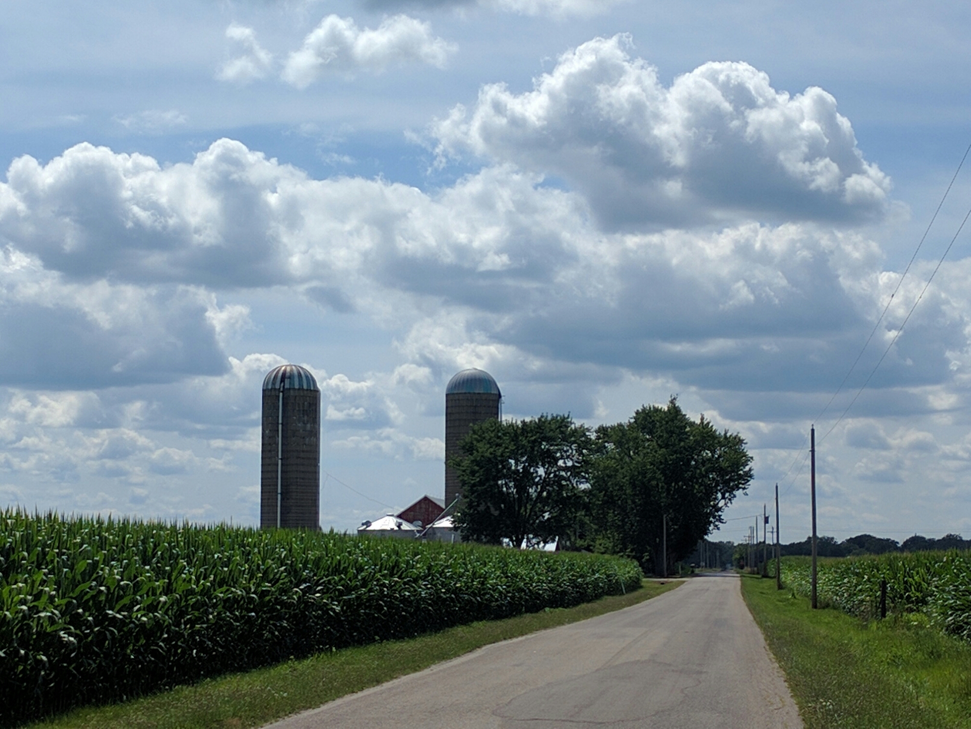 Today was just about a perfect day for riding. The temperature stayed in the low 80’s; the sky was mostly sunny; the humidity dropped below 50% and what little wind there was came from the south. I can handle a crosswind. With the terrain remaining mostly flat and a good night sleep last night, I just kept pedaling.