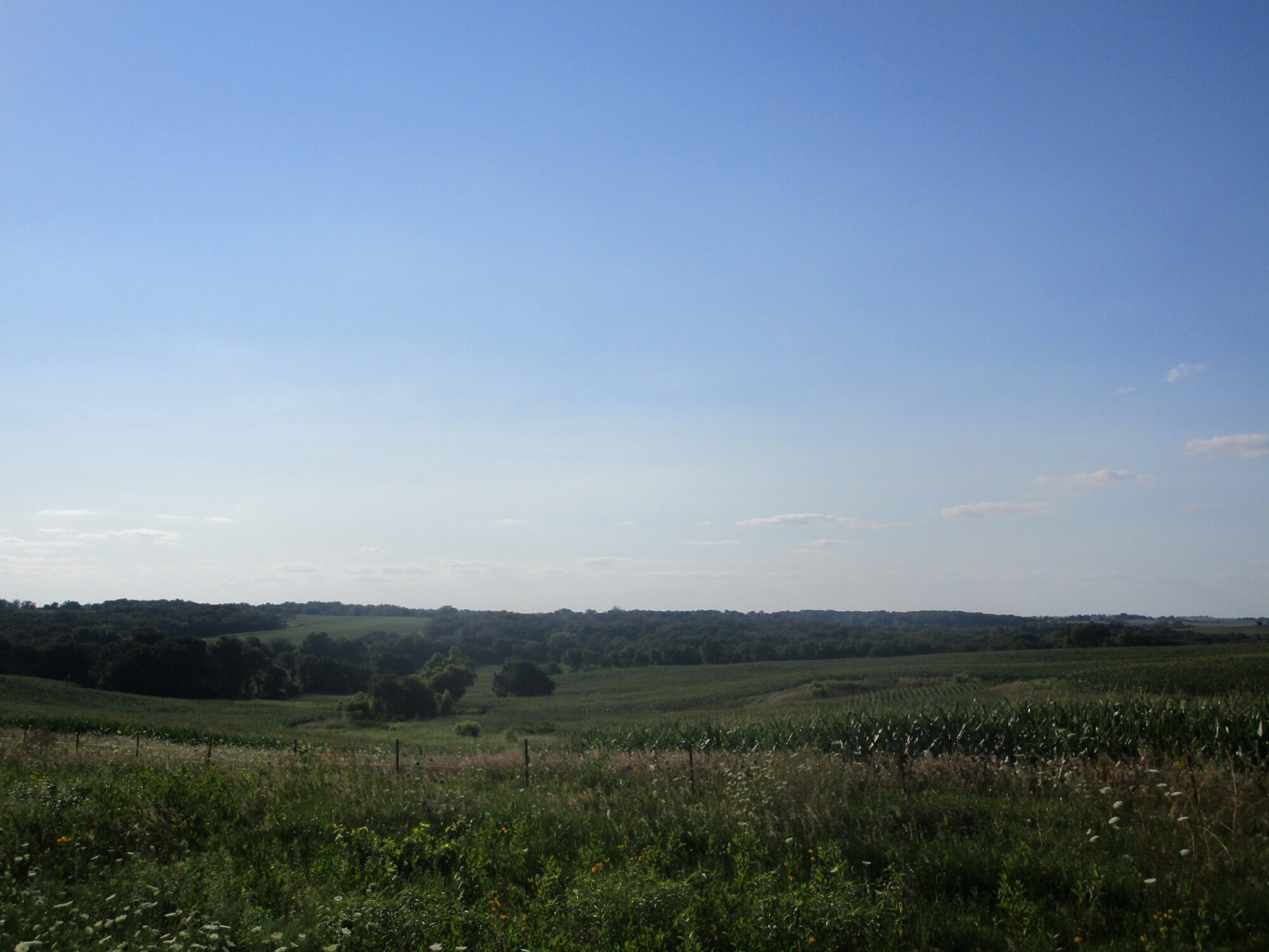 While I was doing laundry, I found out RAGBRAI was going just a few mile north along Highway 2. RAGBRAI is an organized bike ride across Iowa. It is the granddaddy of cross-state bike rides and is the most famous and most popular. One rider told me 20,000 plus riders ride it each year. Their end point for today was a small town about 15 miles northeast of Lamoni. With so many riders, every motel room, campground, and spare space in parks and church yards within 30 miles was taken up. Calls to the two motels and the bed and breakfast in Lamoni confirmed that there were no rooms available. At about 6:00, after finishing my chores, I headed west on a county road hoping for the best.