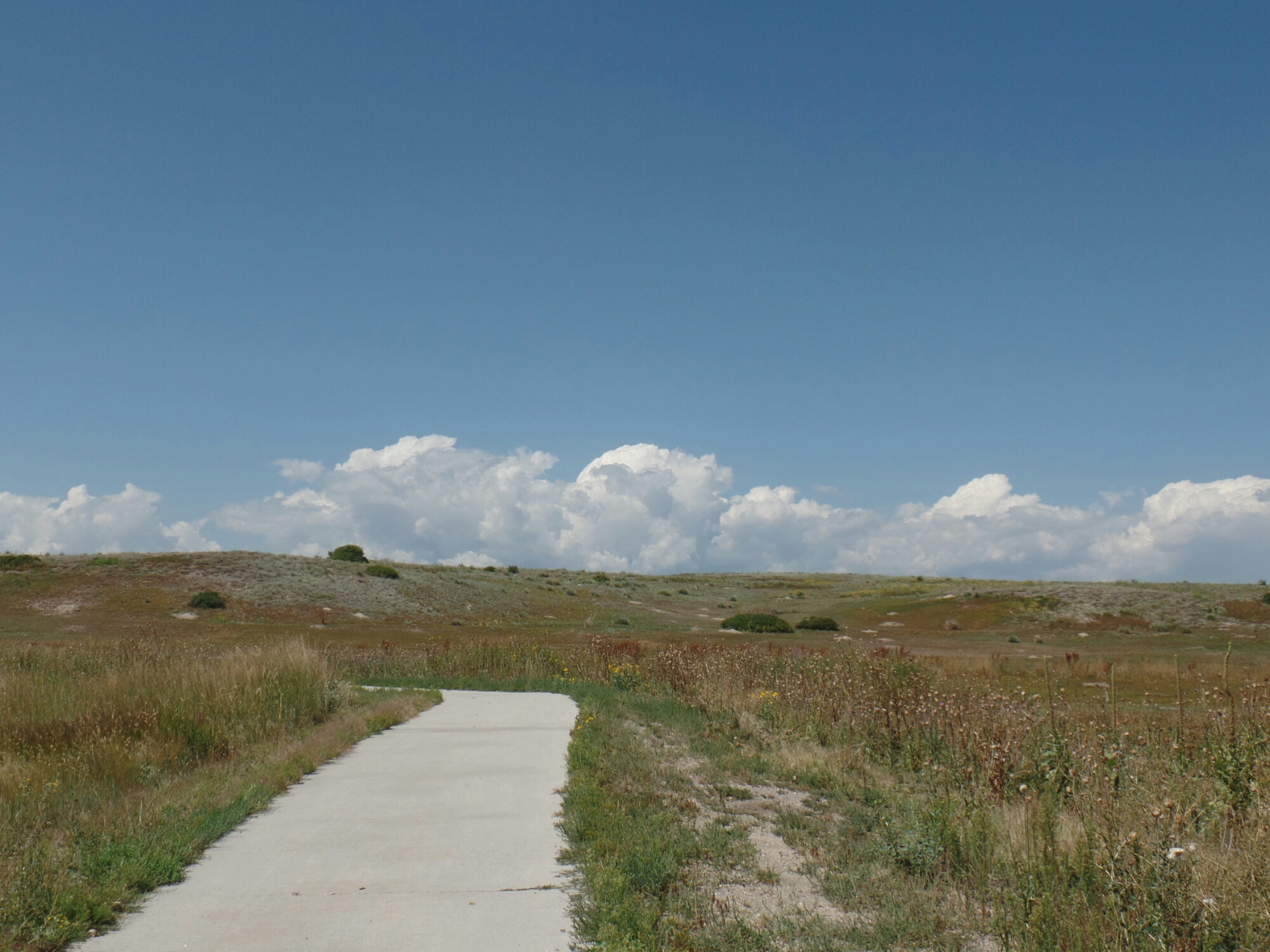 I started the day back on the trail. As soon as I was on the trail, I noticed a large mountain to the south. I’m pretty sure it was Pikes Peak. It formed the backdrop of my ride all day.