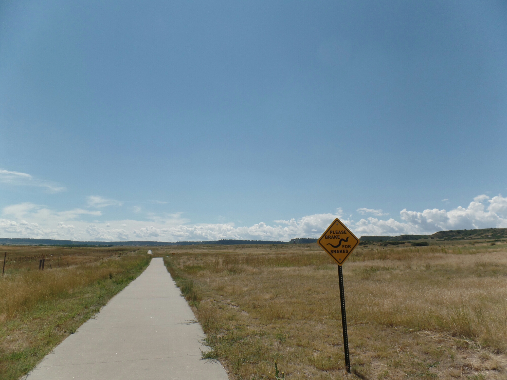 Along the trail, I saw a couple of signs that said to brake for snakes. A little down the trail from the first sign was another warning about rattle snakes. I’m not sure I want to brake for rattlesnakes. I did see a few snakes on the trail, but none of them had rattles.