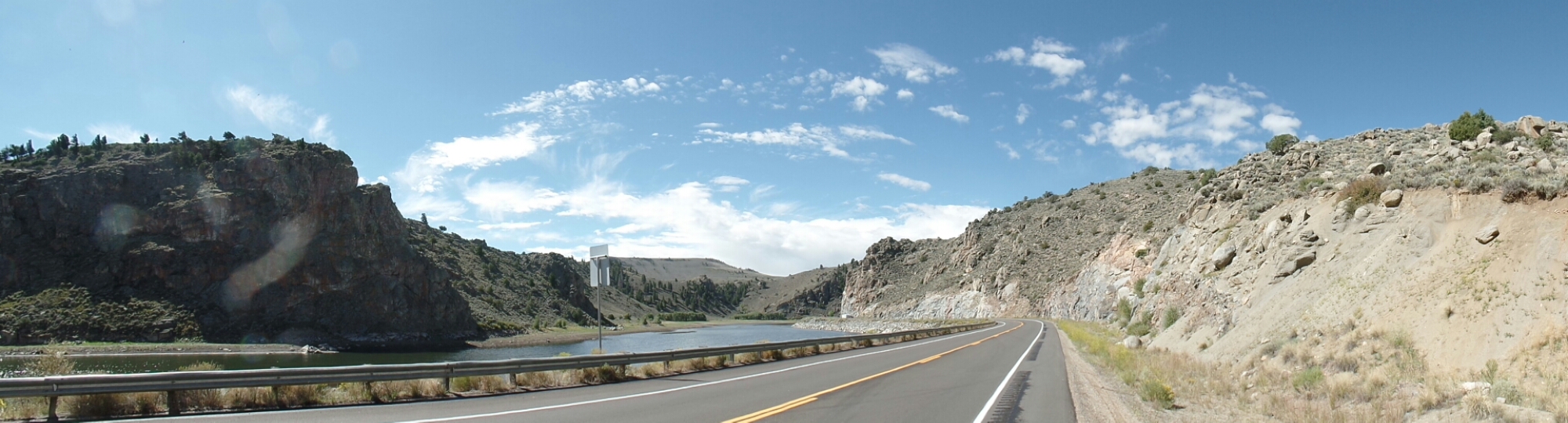 Soon, however, the highway climbed out of the side canyon. There was road construction near the top and the highway was narrowed to one lane. This isn’t the first time I have dealt with a highway narrowed to one lane. Entering Gunnison, the highway was one lane for about three miles. I pedaled as hard and fast as I could to get through the area before traffic started coming at me, but the one lane zone outside Gunnison never seemed to end. I had to stop to let traffic go the other way. The one lane section in the canyon was not as long, but I was climbing out of the canyon, so moving slowly.