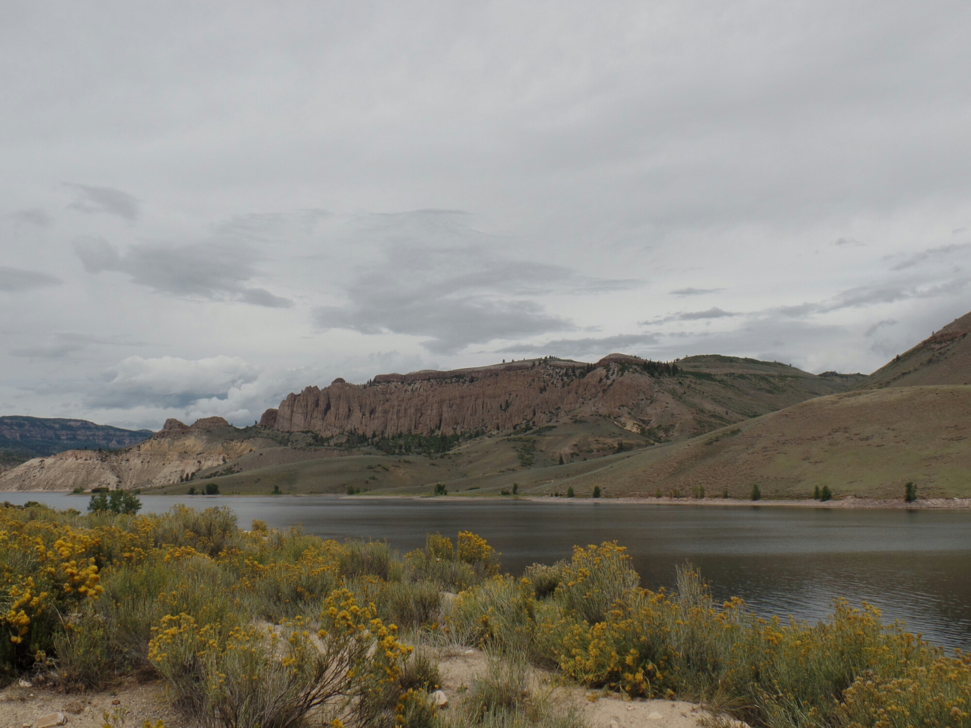 This morning I felt much better and set out on my way. The ride was through some canyons. First, the highway traveled along the Blue Mesa Reservoir. This is a narrow lake in a wide canyon leading up to the Black Canyon. Just before the canyon, the highway crossed the lake near Sapinero. That’s another town name that is fun to say.