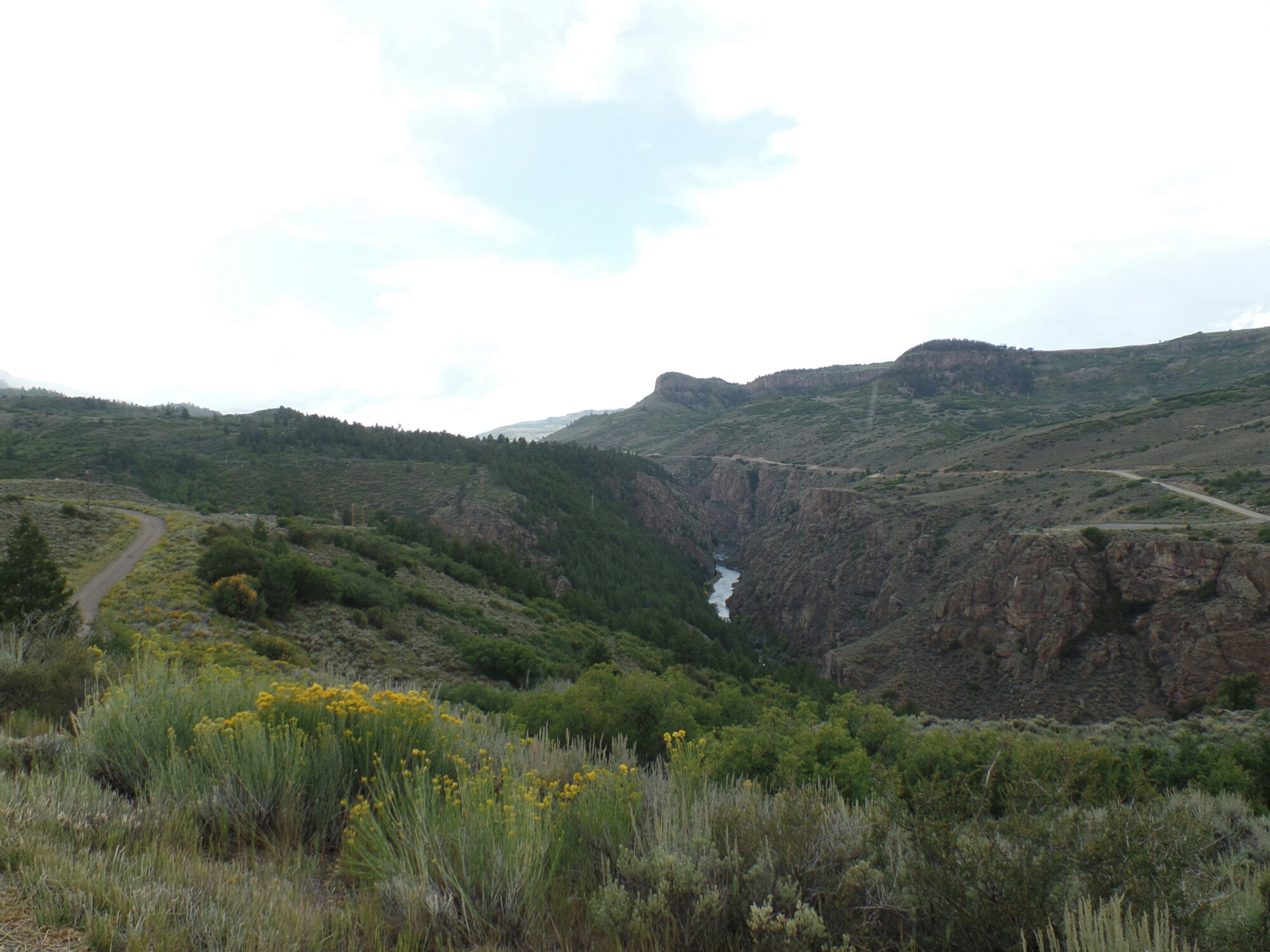 After Sapinero, there was the first climb. The highway climbed out of the canyon holding the lake and near Blue Mesa. It was starting to get cloudy, so I don’t know if I ever actually saw the Blue Mesa. Then there was a drop into a side canyon. The side canyon was narrow, steep and very beautiful.
